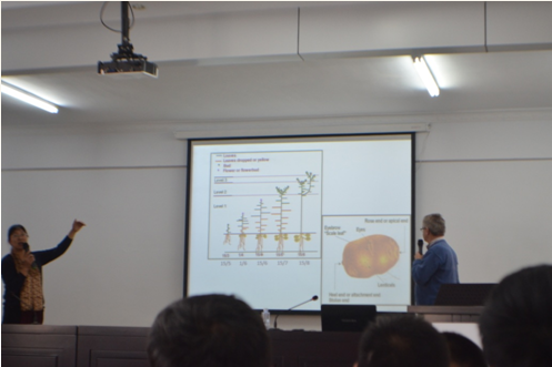 培訓(xùn)會(huì)上,Harrie先生對(duì)馬鈴薯規(guī)范化種植管理的重要意義進(jìn)行了深刻闡述,并就馬鈴薯各生長(zhǎng)周期內(nèi)易發(fā)、頻發(fā)的病蟲(chóng)害及其防治措施與馬鈴薯種植、生產(chǎn)全程現(xiàn)代化管理等內(nèi)容進(jìn)行了講解,理論聯(lián)系實(shí)際,內(nèi)容詳實(shí)全面,得到了參訓(xùn)學(xué)員的廣泛認(rèn)可。培訓(xùn)全程為英語(yǔ)授課,為了使參訓(xùn)學(xué)員能夠真正聽(tīng)得懂、學(xué)得會(huì),公司特聘內(nèi)蒙古農(nóng)業(yè)大學(xué)農(nóng)學(xué)專業(yè)教授進(jìn)行了全程翻譯。